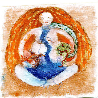 Comecei a trabalhar nos paninhos em 2008, fazendo algo inédito pra mim: juntar a pintura e o têxtil.